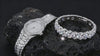 Esfera y brazalete cubiertos de cristales para un brillo máximo.
